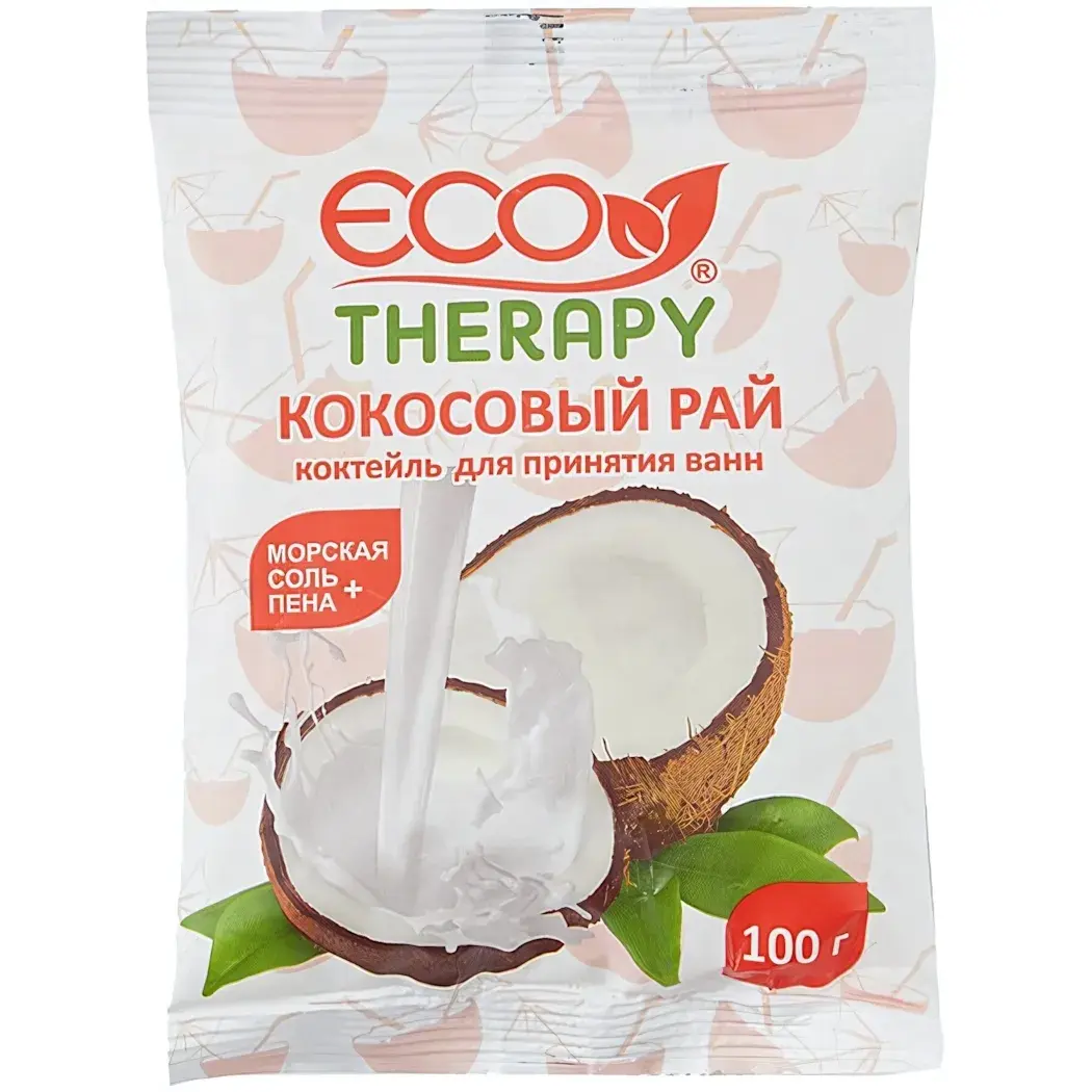 Упаковка содержит 100 г продукта, что достаточно для нескольких применений. Соль упакована в удобный пакет, который легко хранить и использовать. Основные ингредиенты — морская соль и ароматизаторы, которые обеспечивают приятный запах и эффект пены. Подарите себе и своим близким возможность насладиться качественным уходом за телом с солью для ванны ЭКОТЕРАПИЯ 'Кокосовый рай'.