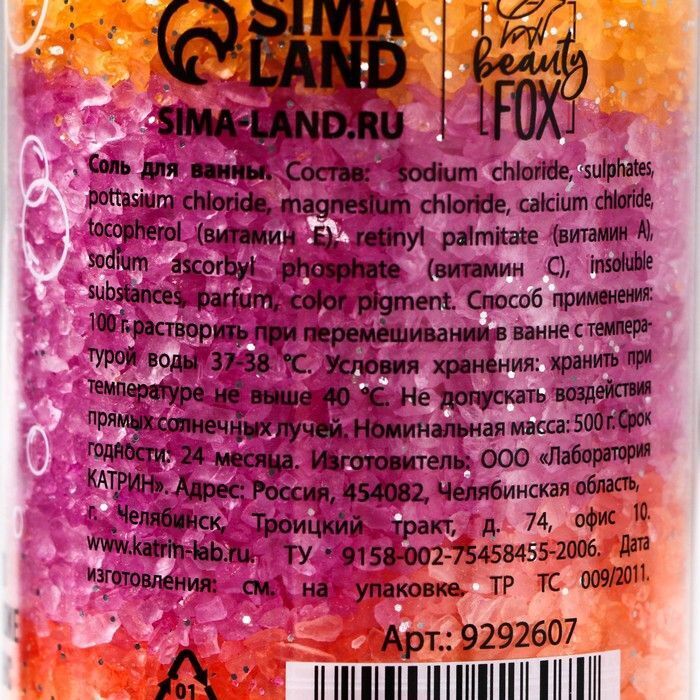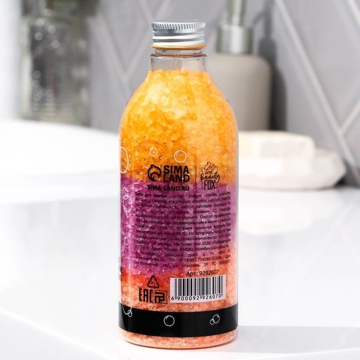 Соль имеет кристаллическую структуру и представлена в ярких цветах, что делает ее не только полезной, но и эстетически привлекательной. Упаковка выполнена из прочного пластика с закручивающейся крышкой, что обеспечивает удобство хранения. Храните соль в сухом месте при температуре не выше 40°C и избегайте прямых солнечных лучей, чтобы сохранить ее свойства на долгое время.