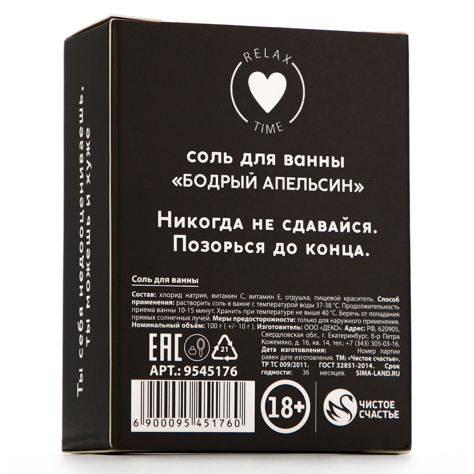 Соль для ванны «Похмелье» с бодрящим апельсином, 100 гр, для расслабления и тонуса