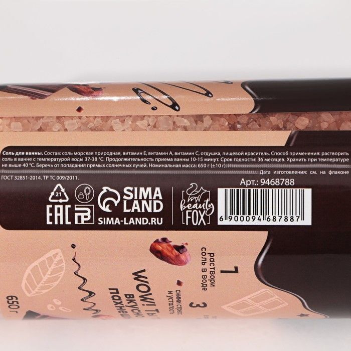 Соль предназначена для использования в ванной. Просто растворите необходимое количество соли в теплой воде и погрузитесь в расслабляющую атмосферу. Идеально подходит для всех, кто хочет улучшить свое настроение и насладиться ароматом шоколада. Соль подходит для взрослых и станет отличным дополнением к вашему ритуалу личной гигиены.