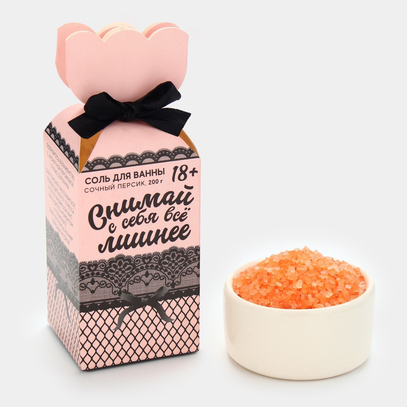 Соль для ванны «Снимай с себя всё лишнее» с ароматом персика, 200 гр, натуральная, розовые кристаллы