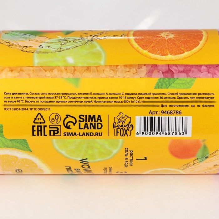 - Состав: морская соль, витамины, пищевые красители