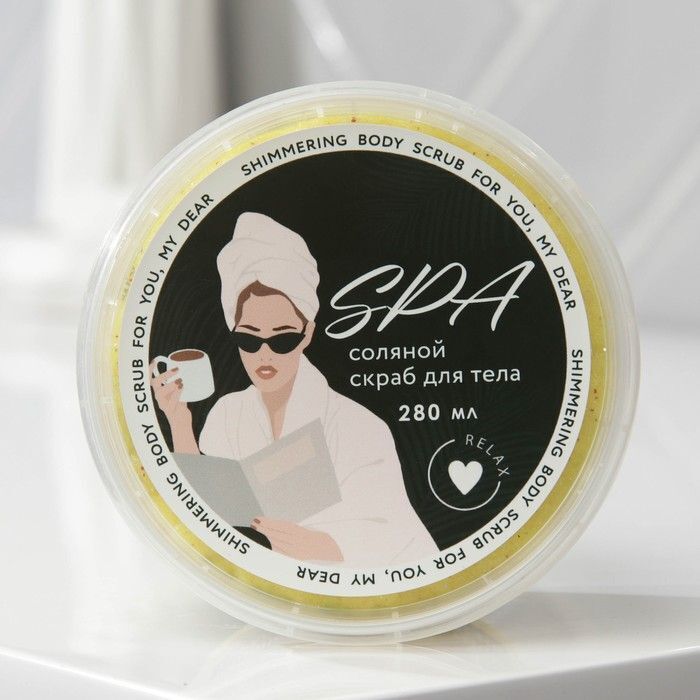 Скраб имеет желтоватый цвет с крупинками соли, что свидетельствует о его натуральности. Упаковка выполнена в удобном пластиковом контейнере с прозрачной крышкой, что позволяет контролировать количество оставшегося продукта. Не забудьте хранить его в сухом месте и использовать в течение 36 месяцев с момента изготовления.
