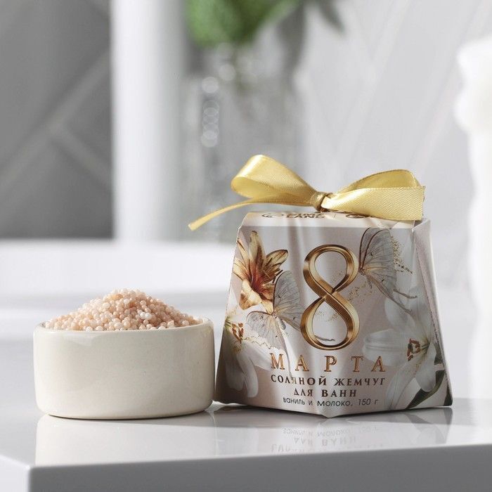 Подарите себе или близким незабываемые моменты расслабления с соляным жемчугом для ванны «С 8 марта!». Этот продукт с ароматом ванили и молока не только наполняет ванну приятным запахом, но и создает атмосферу уюта и комфорта. Позвольте себе насладиться настоящим спа-эффектом прямо у себя дома!