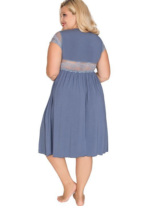 Сорочка из вискозы с кружевом, размер XXL, цвет грязно-синий, комфортная резинка под грудью