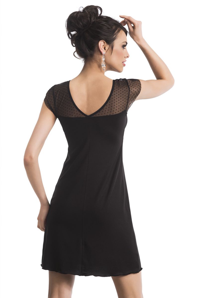 Эта женская сорочка сочетает в себе чувственность и комфорт, создавая идеальный образ для романтического вечера или отдыха дома. Модель "Naomi" с изящной сетчатой отделкой в мелкий горошек привлекает внимание к вашим достоинствам, оставаясь при этом невероятно удобной благодаря мягкой вискозной ткани.