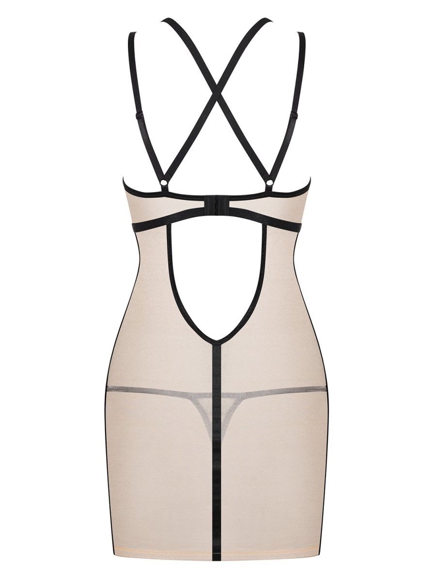 Размер: L-XL. Цвет: телесный с черным. Материал: 90% полиамид, 10% эластан. Сорочка имеет тонкие бретели и открытые элементы, что добавляет ей сексуальности и привлекательности. Не упустите возможность добавить этот стильный элемент в ваш гардероб!