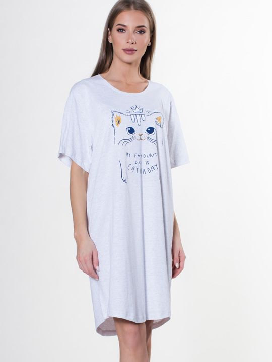 Подарите себе ощущение безмятежного отдыха и лёгкости в этой трикотажной сорочке свободного кроя. Мягкий хлопок обнимает тело, а жизнерадостный принт с коронованной кошкой и остроумной надписью поднимает настроение с самого утра. Идеальная модель для тех, кто ценит удобство, натуральные материалы и неформальный стиль в домашней одежде.