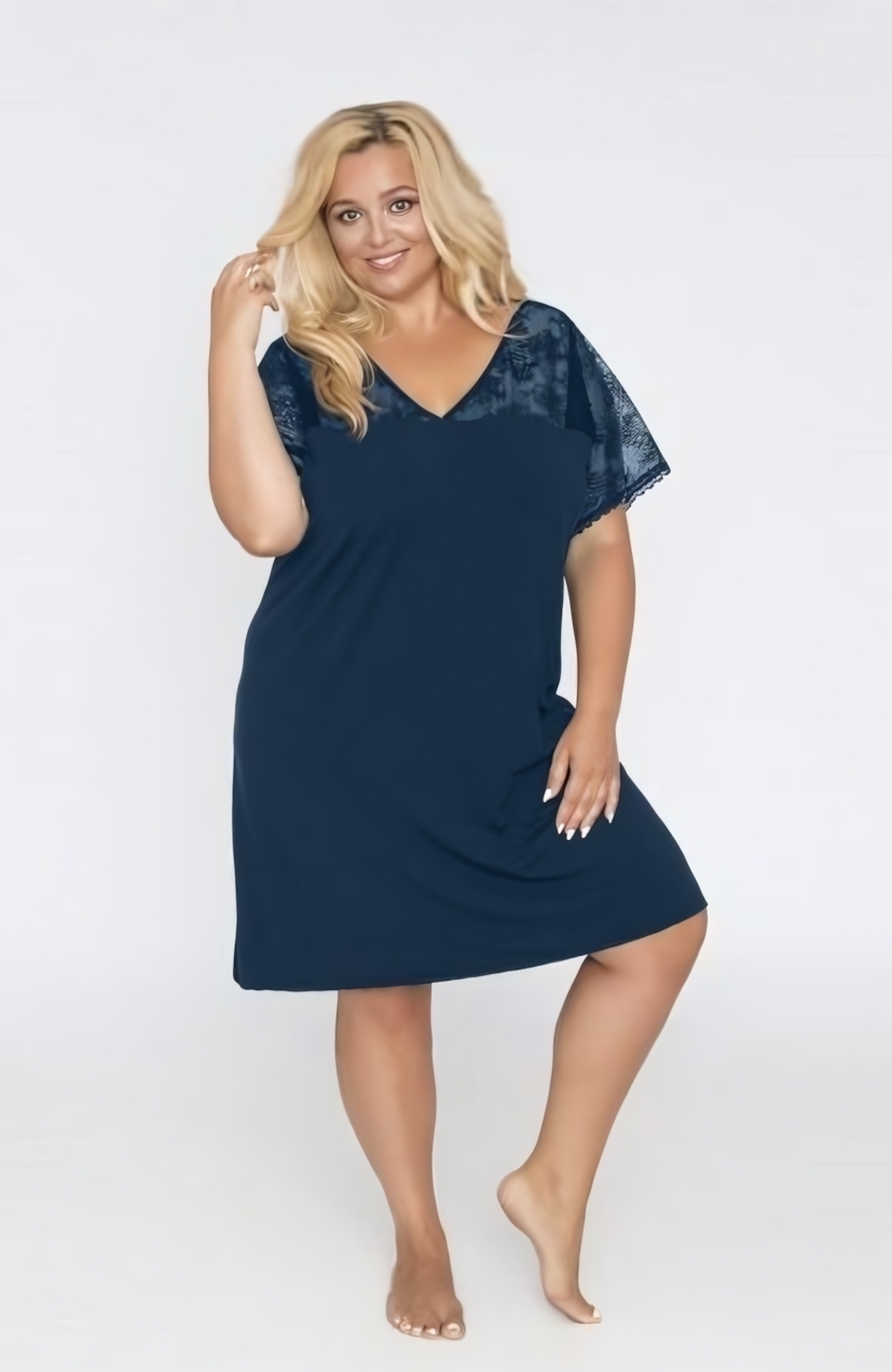 Сорочка женская с V-вырезом и кружевными вставками, размер L, темно-синий, 94% вискоза/6% эластан