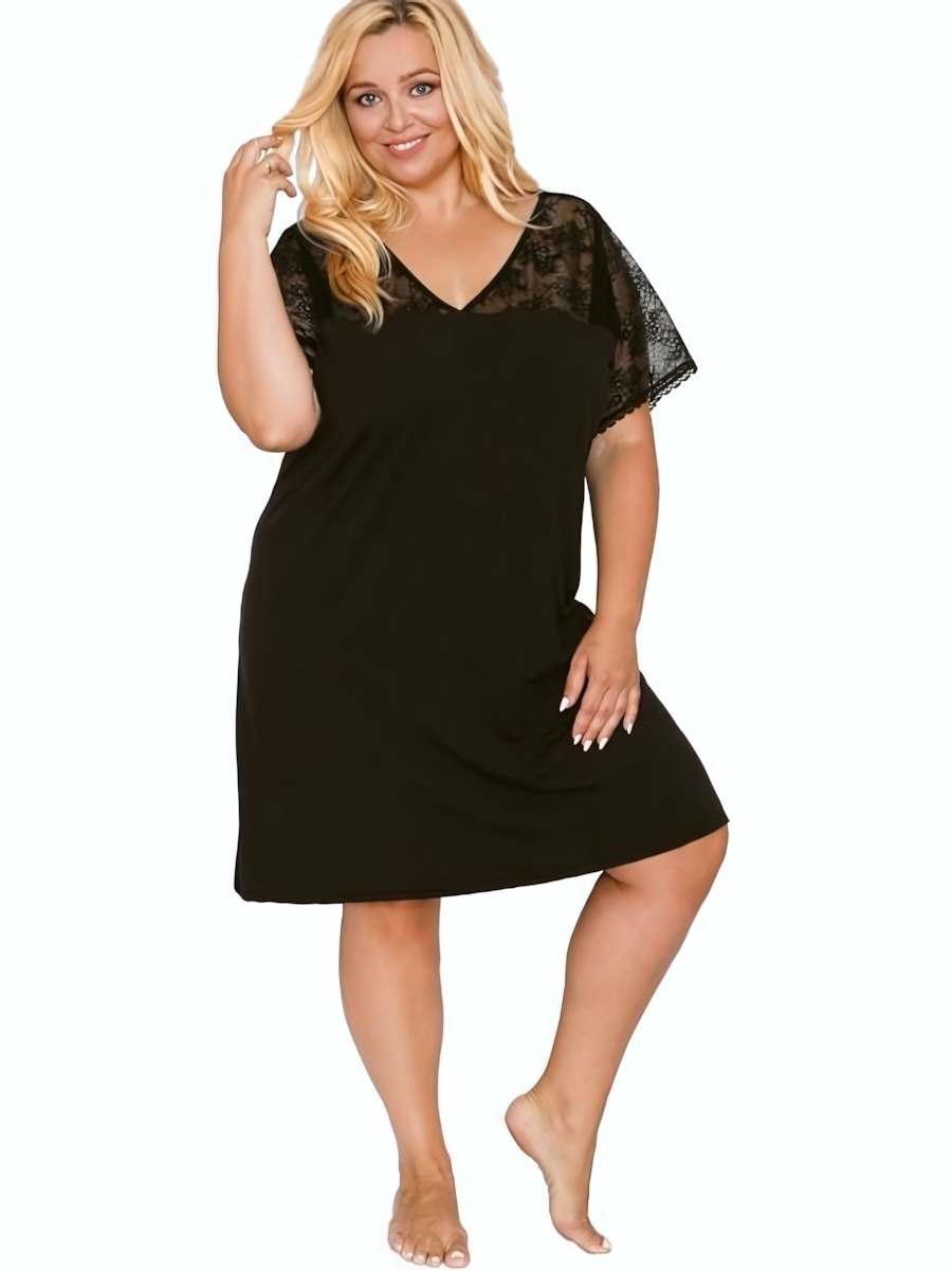 Сорочка с V-образным вырезом черная XL, кружево и микрофибра