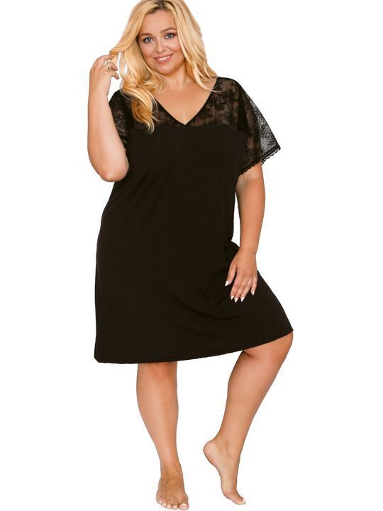 Сорочка предназначена для домашнего использования, идеально подходит для сна или отдыха. Короткие рукава и кружевные вставки придают ей легкость и изящество, а перекрещивающиеся бретели на спине добавляют нотку романтики. Эта модель станет отличным выбором для женщин, которые хотят выглядеть стильно даже в домашней обстановке.