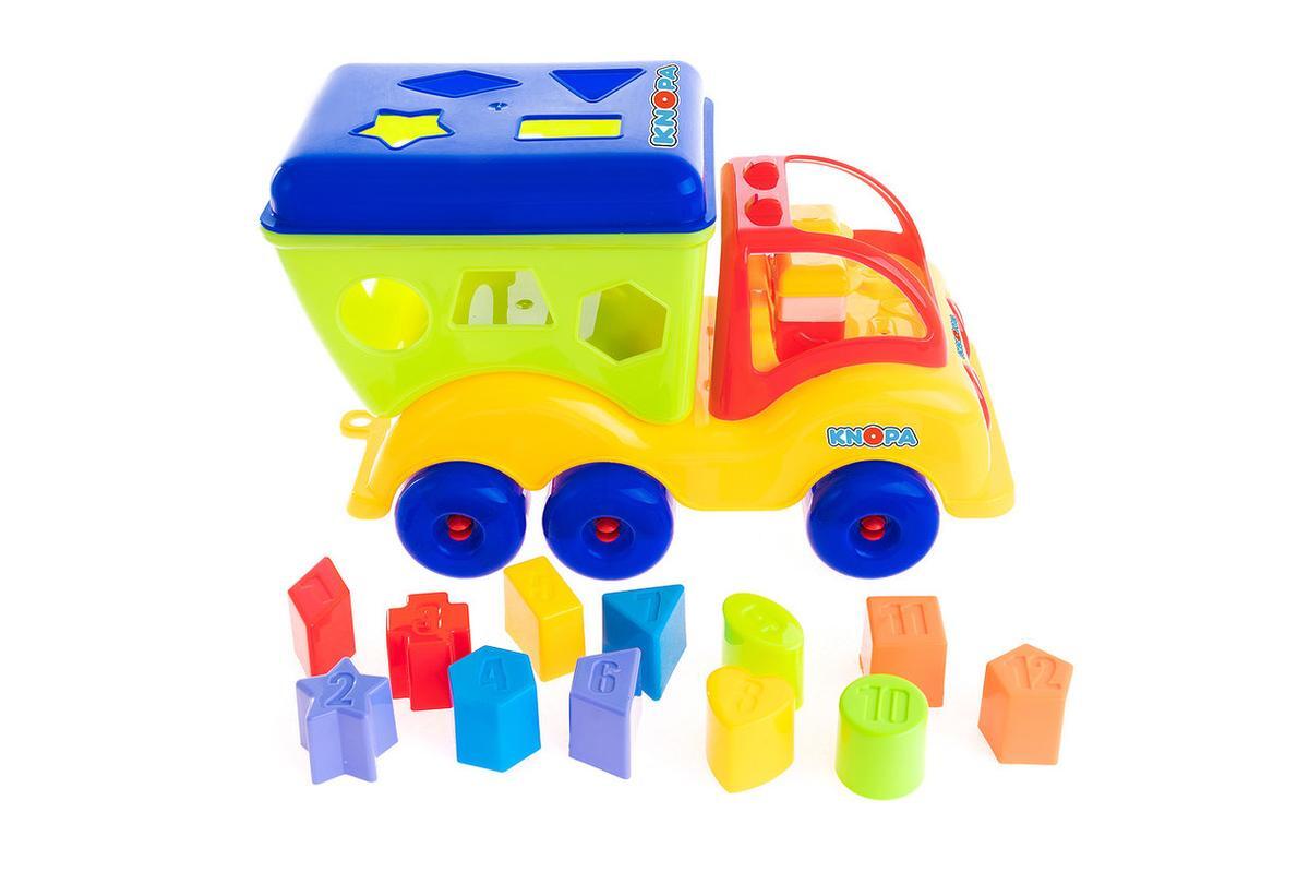 Сортер-автомобиль «Силач»: развивающая игрушка, 12 фигур с цифрами, геометрические формы, яркие цвета, прочный пластик