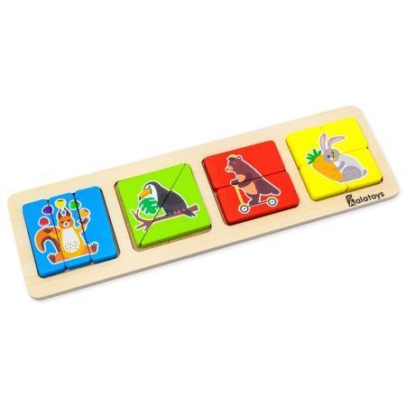 Идеально подходит для детей от 1 года, сортер состоит из 4 крупногабаритных элементов с изображениями белочки, птицы, медведя и кролика. Все детали выполнены из экологически чистых материалов и покрыты безопасными водорастворимыми красками, что обеспечивает безопасность и долговечность изделия.