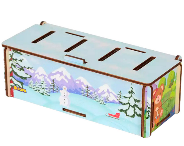 Верхняя крышка сортера имеет вырезы 4-х форм, соответствующие формам цветов на игровых элементах. Деревянный корпус с элементами из бумаги обеспечивает долговечность при бережном использовании.