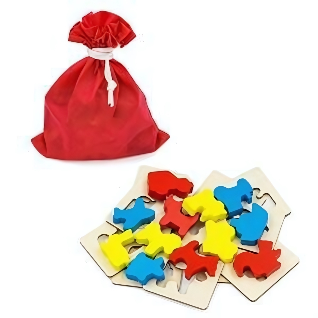 Преимущества этого набора заключаются в использовании натуральных материалов, безопасных для детей, и компактной конструкции, что делает его удобным для хранения и транспортировки. Размер фигурок и рамок позволяет малышам легко манипулировать ими, развивая моторику и логику одновременно. Игра стимулирует зрительное восприятие, развитие мышления и воображения, а также способствует семейному взаимодействию.