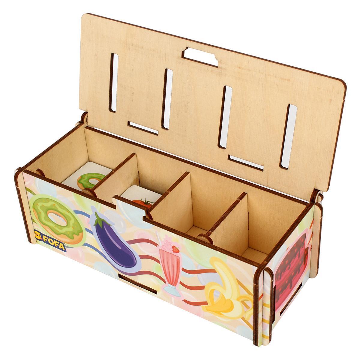 Деревянный сортер FOFA помогает развивать логическое мышление и мелкую моторику в процессе сортировки ярких карточек. Эргономичная конструкция с 4 тематическими категориями учит анализировать форму, цвет и принадлежность предметов к группам продуктов.