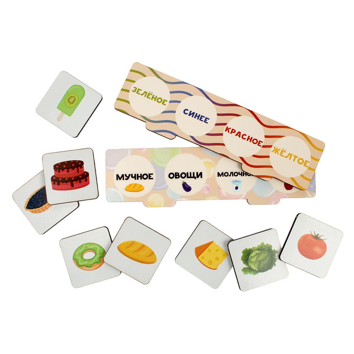 Яркие иллюстрации продуктов питания и цветовые зоны стимулируют зрительное восприятие. Ребёнок учится сопоставлять часть и целое, развивая критическое мышление. Прочная деревянная основа выдерживает активные игры, а закруглённые края элементов обеспечивают безопасность.
