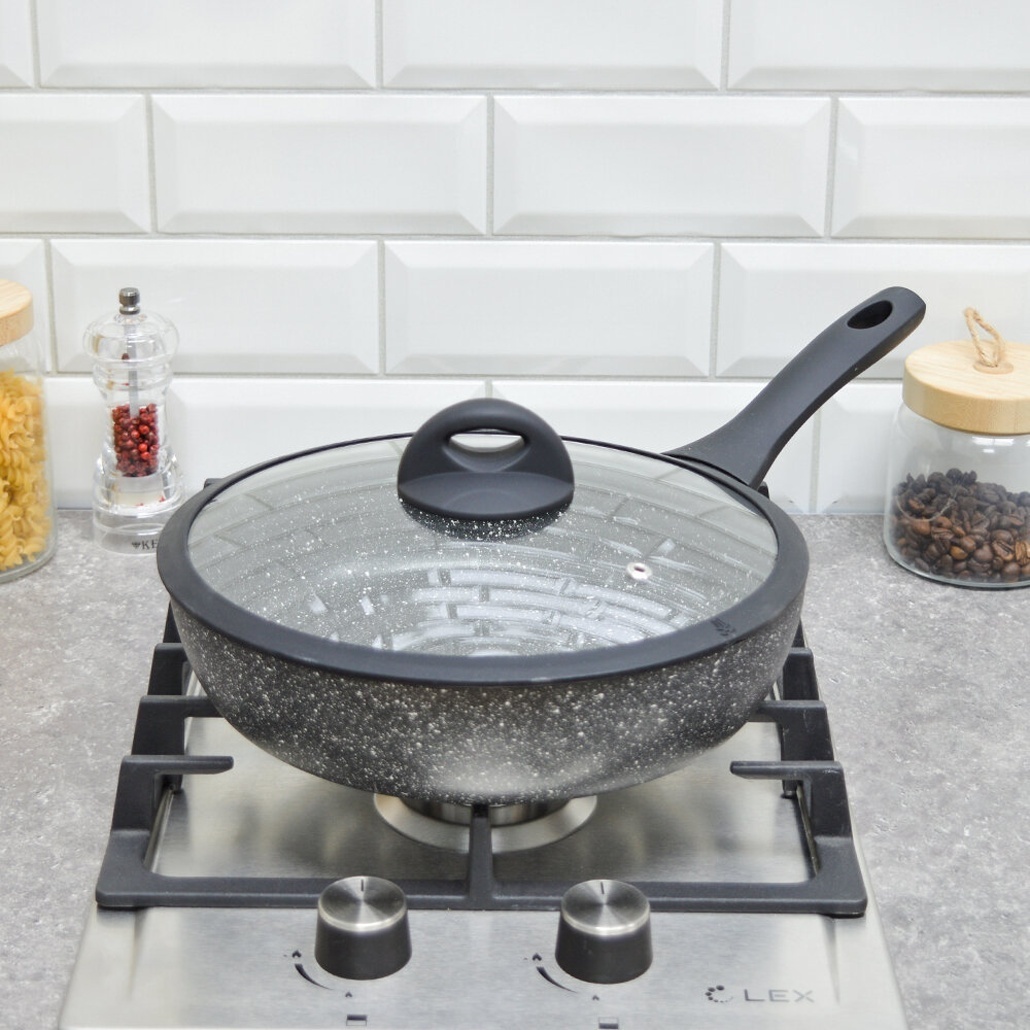 Сотейник антипригарный 26см "Hi-Black", алюминий, стеклянная крышка, для всех плит