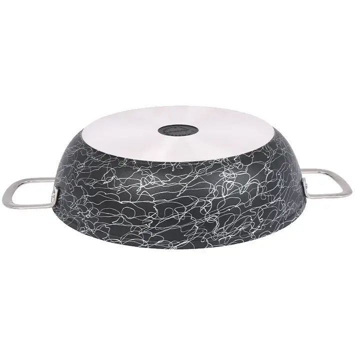 Толстое дно сотейника обеспечивает быстрое и равномерное распределение тепла, что позволяет готовить еду за считанные минуты. Ровное, проточенное дно гарантирует максимальное прилегание к плите, что особенно важно для индукционных плит. Сотейник выполнен из литого алюминия, что делает его легким и долговечным.