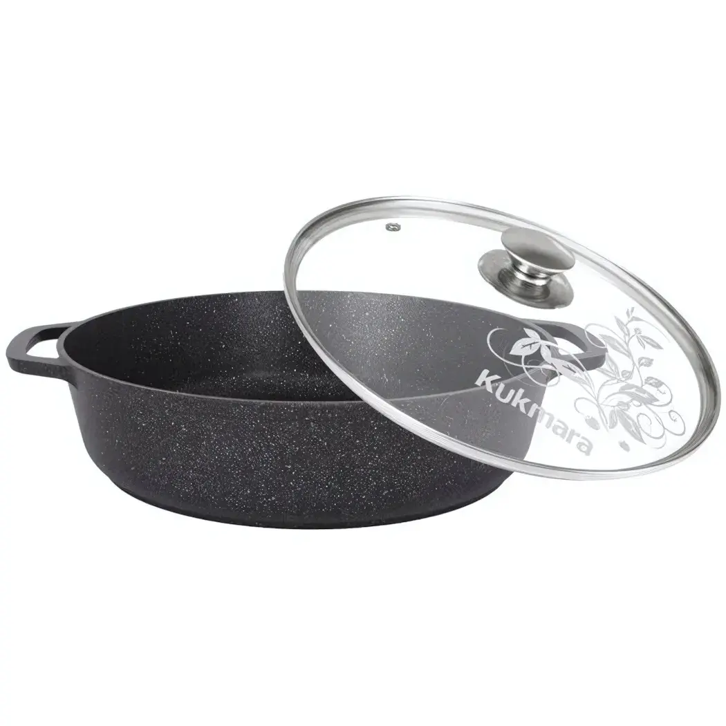 Сотейник 32см с крышкой, литой алюминий, 'темный мрамор', Kukmara