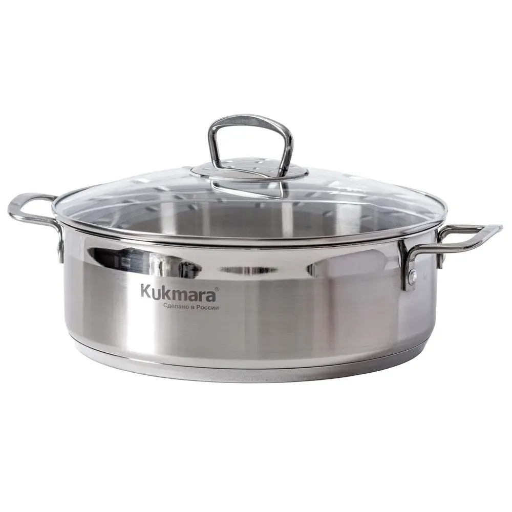 Сотейник Kukmara серии «Orion» сочетает в себе профессиональное качество и эргономичный дизайн. Утолщённое дно из нержавеющей стали обеспечивает равномерный прогрев, а прозрачная стеклянная крышка позволяет контролировать процесс готовки без потери тепла.