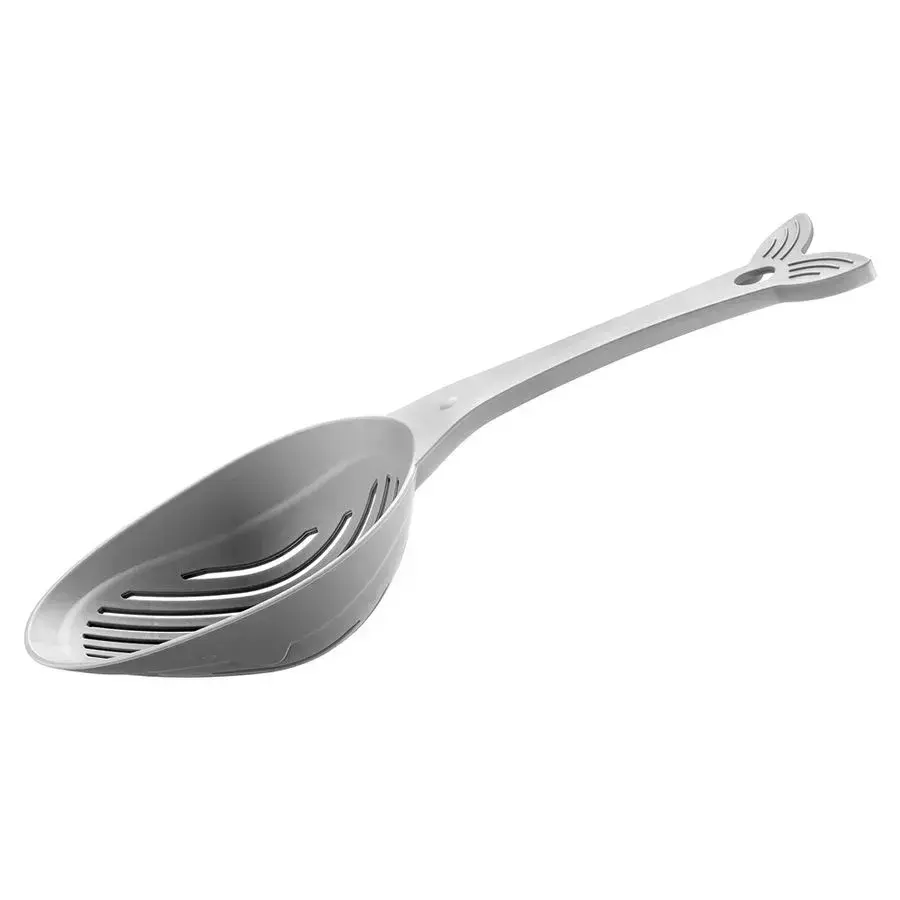 Совок для кошачьего туалета, 33 см, пластик, прорези для слива, эргономичная ручка, серый
