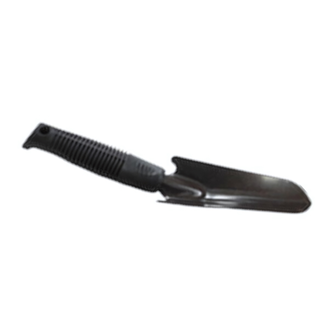 Совок садовый узкий с рифленой ручкой, металлическое лезвие 1-1,2 мм, черный цвет