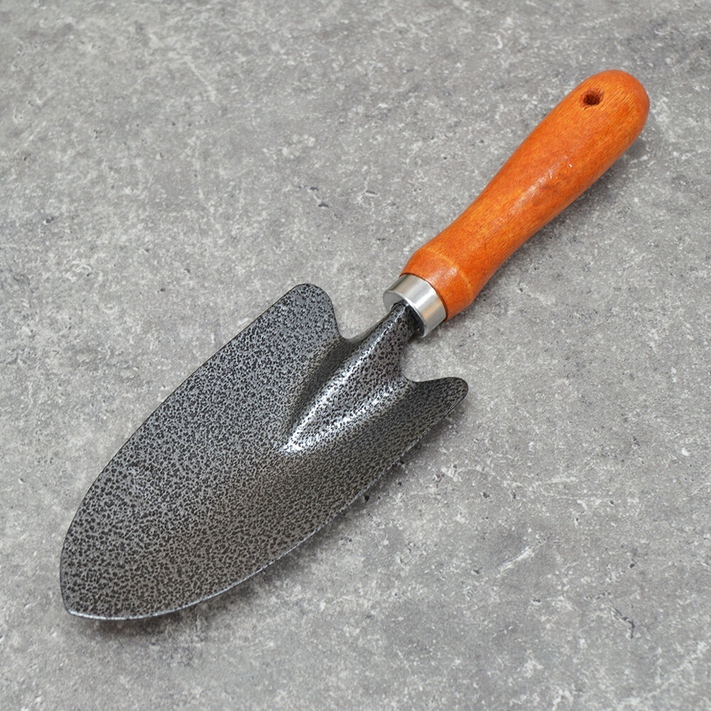 Инструмент длиной 24 см оптимален для работы на грядках и в цветочных горшках. Текстурированная поверхность металлической части обеспечивает лучшее сцепление с почвой. Деревянная ручка с отверстием позволяет удобно хранить совок на крючке.