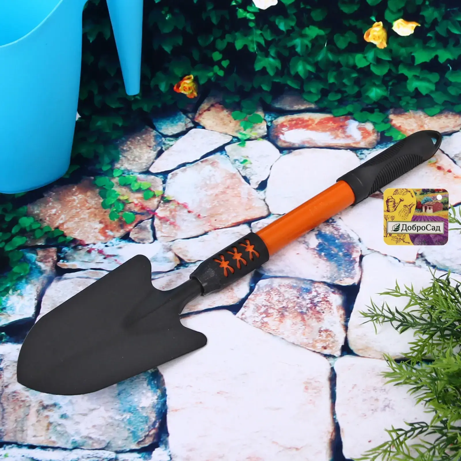 Совок имеет черную рабочую часть и ярко-оранжевую ручку, что делает его не только функциональным, но и стильным. Он легко впишется в любой садовый арсенал. Размеры совка и его форма позволяют использовать его даже в ограниченных пространствах, что делает его идеальным для работы на даче или в огороде.