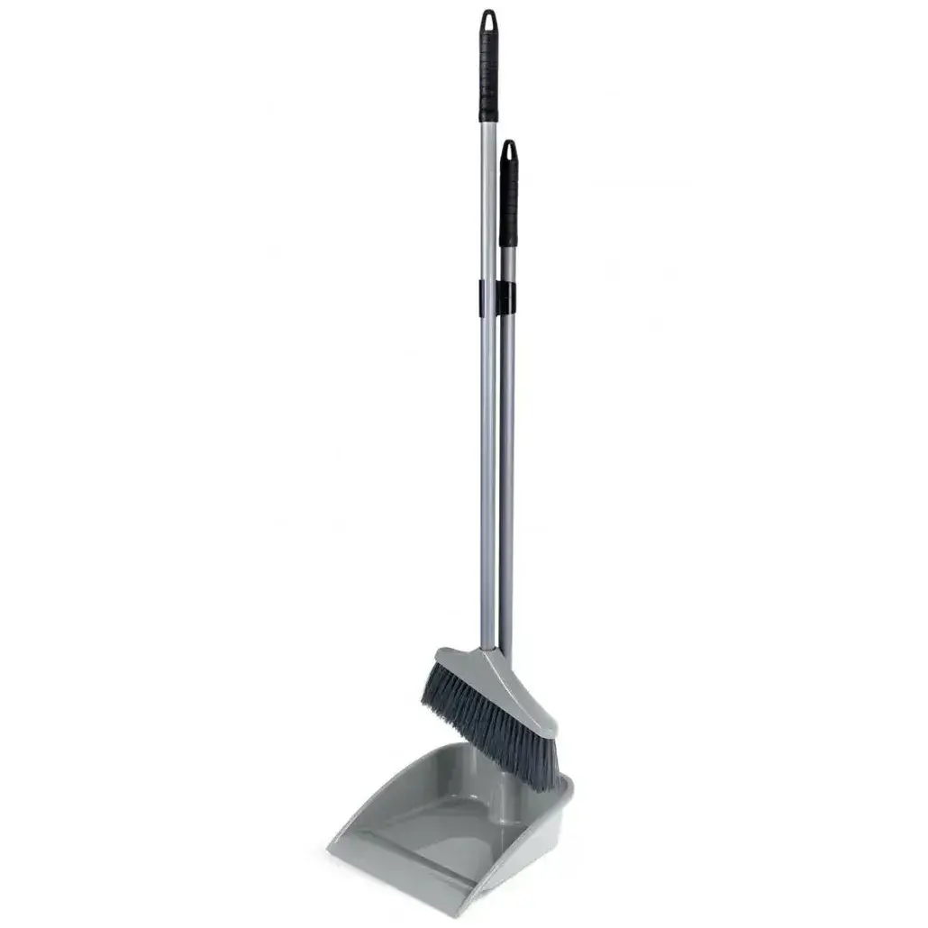 Совок со щеткой «Перфетто», высокая ручка 90 см, серебристый, для комфортной уборки