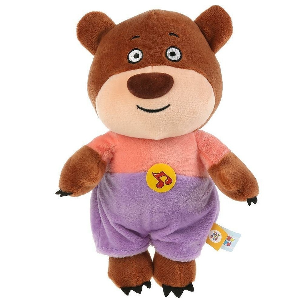 Представляем очаровательного медвежонка Михаила из популярного мультсериала 'Оранжевая корова'. Этот забавный персонаж не только радует глаз своим ярким нарядом, но и разговаривает фразами из любимого мультика.