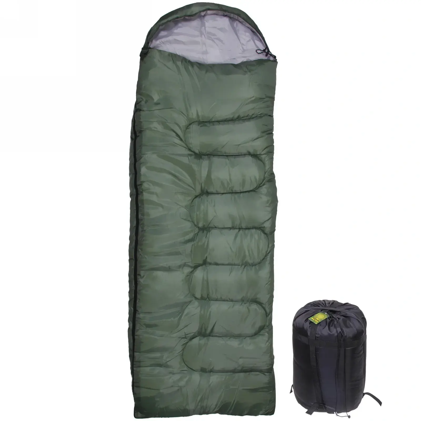 Спальник-одеяло с капюшоном 210х75 см, синтепон, полиэстер, до -5°c, зеленый, чехол для транспортировки