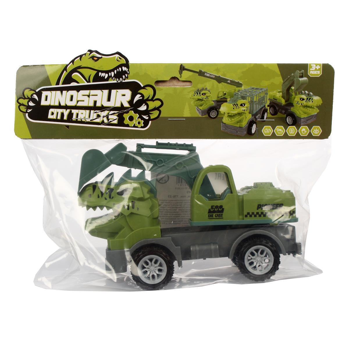 Благодаря прочному пластику и продуманной конструкции, машинка выдержит активные игры. Размер 16см идеально подходит для детской руки. Яркий дизайн с элементами динозавра стимулирует воображение.