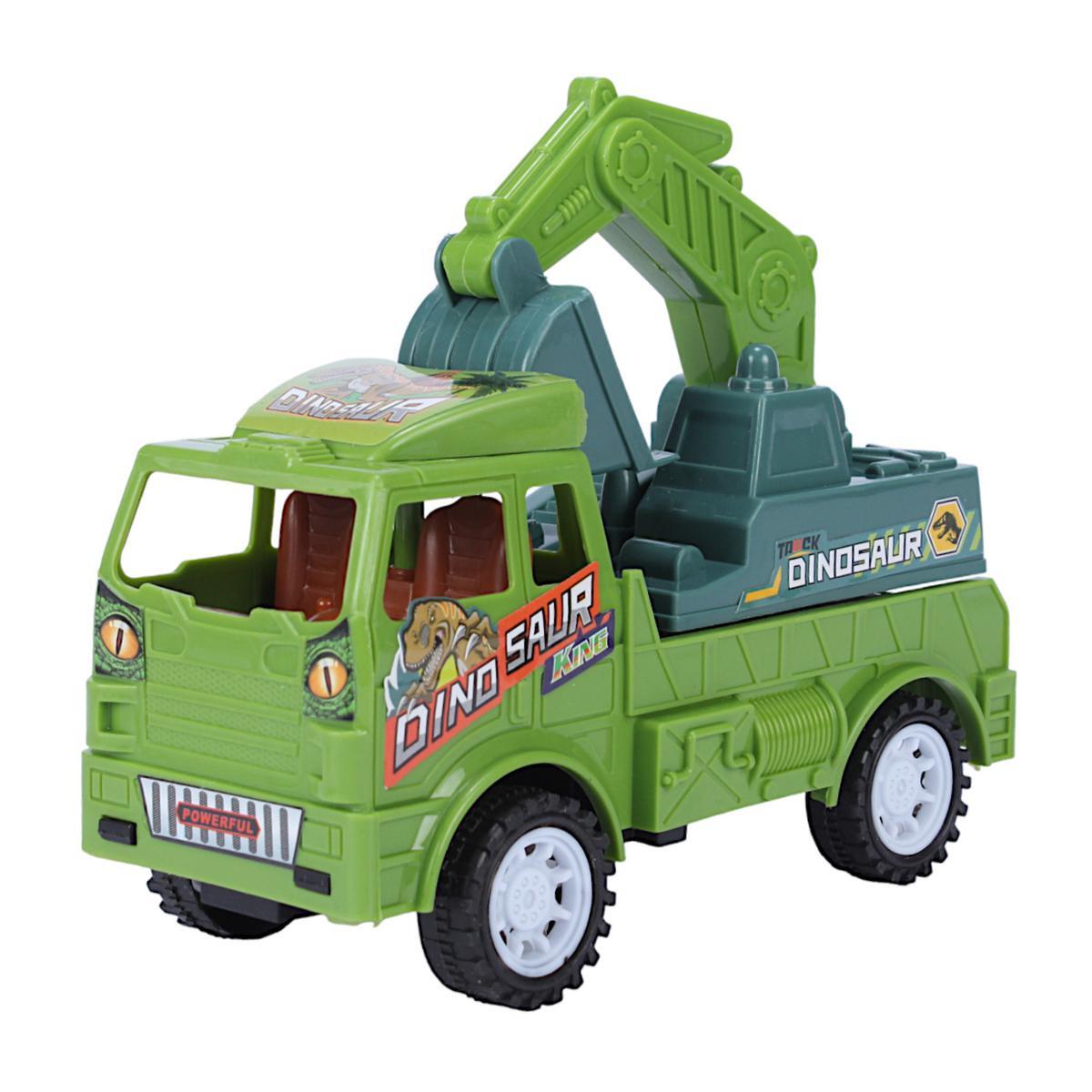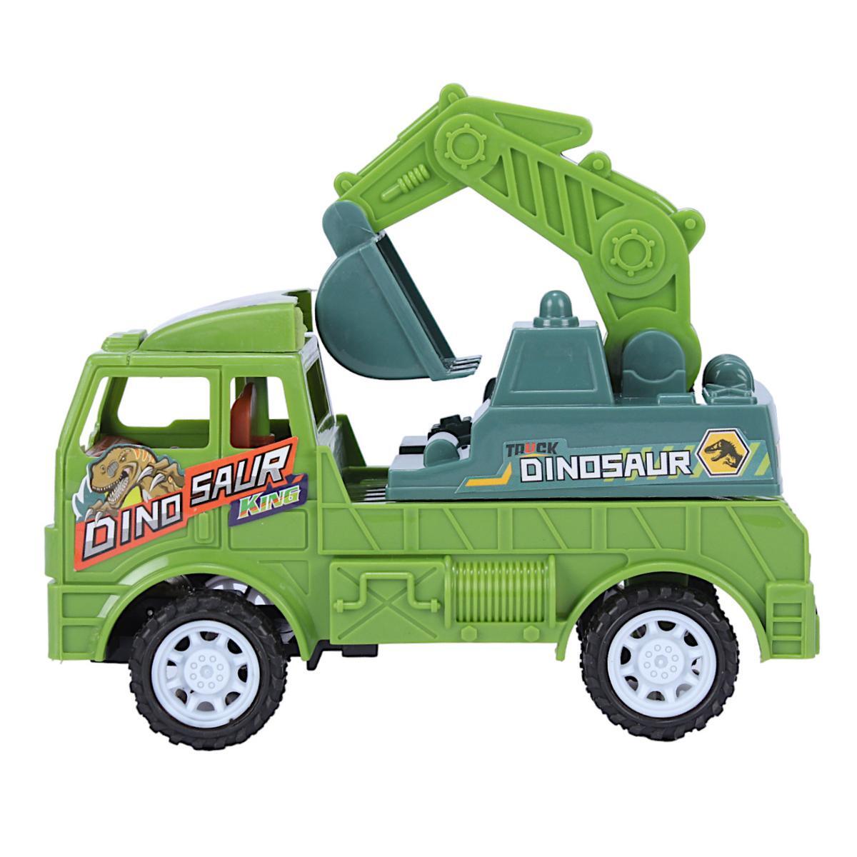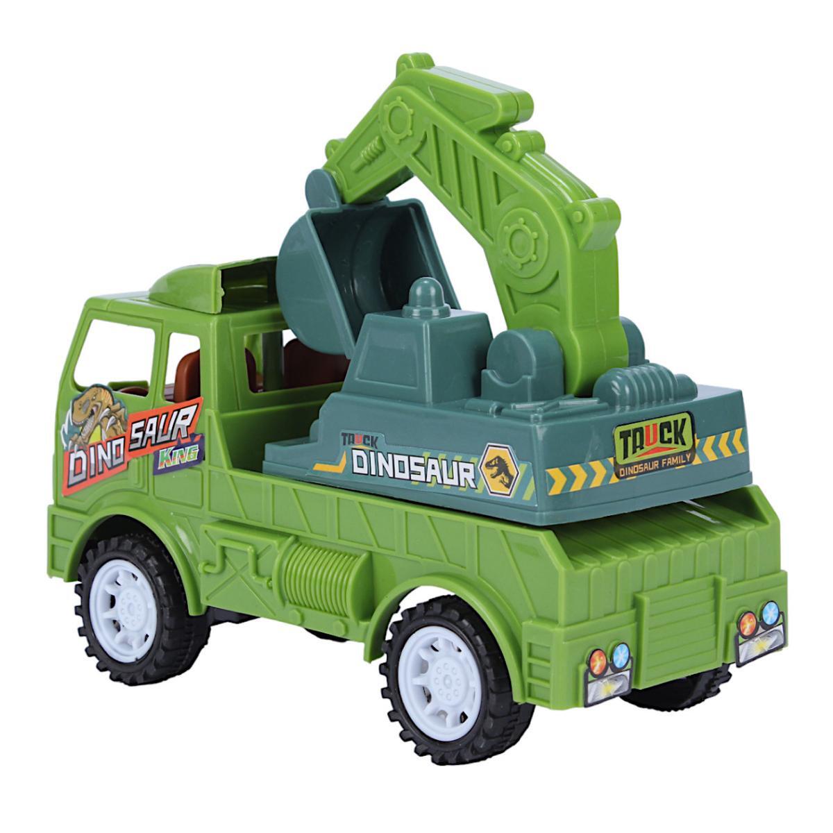 Этот компактный пластиковый грузовик длиной 16.2 см, шириной 7.5 см и высотой 13 см идеально подходит для детей, любящих строительство и приключения. Благодаря подъемному ковшу и яркому дизайну с изображениями динозавров, игрушка стимулирует воображение и развивает моторику.