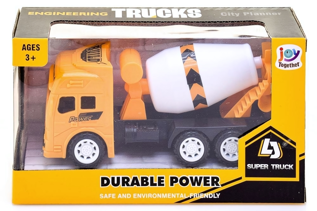 Инерционная бетономешалка, игрушка для детей от 3 лет, оранжево-черный, прочный пластик