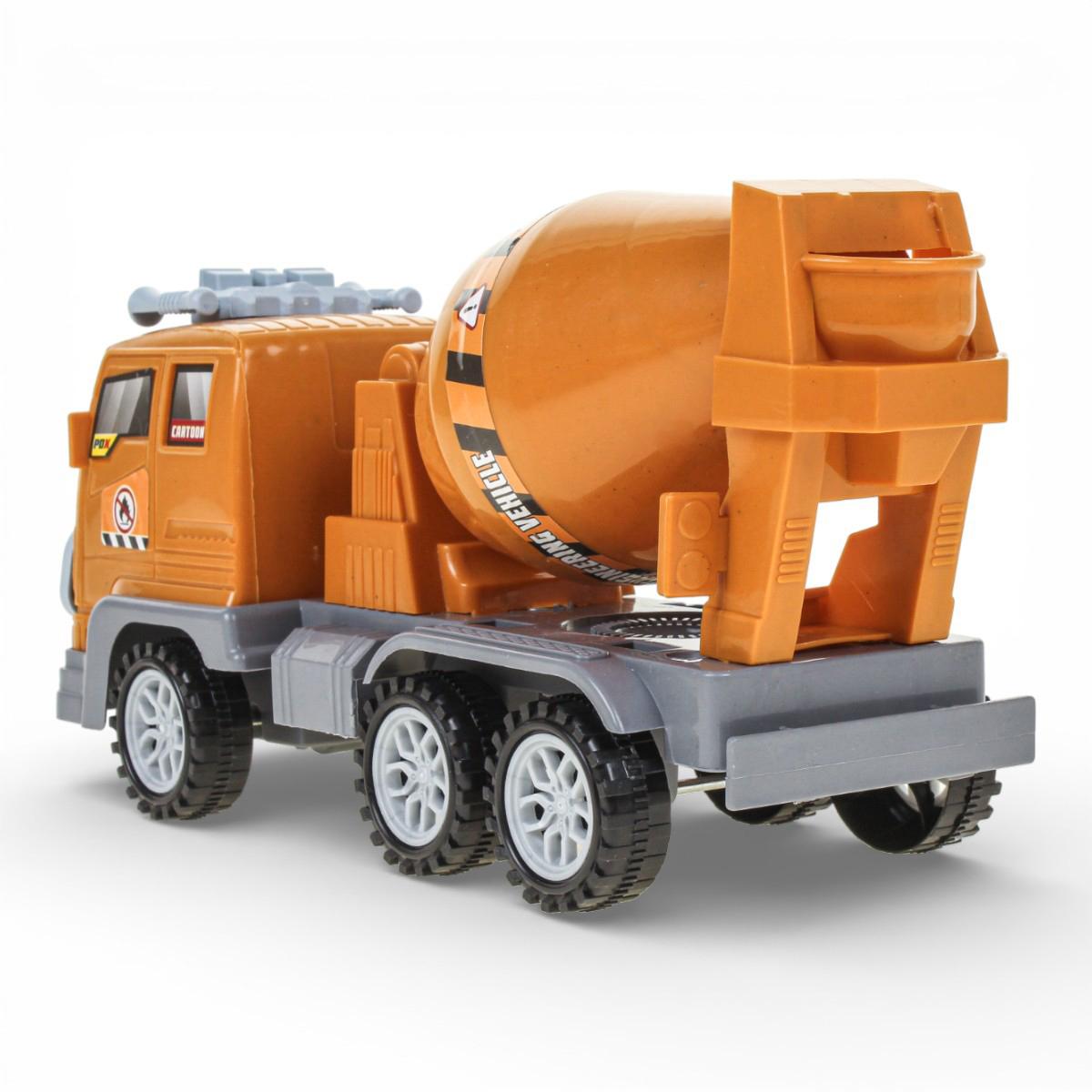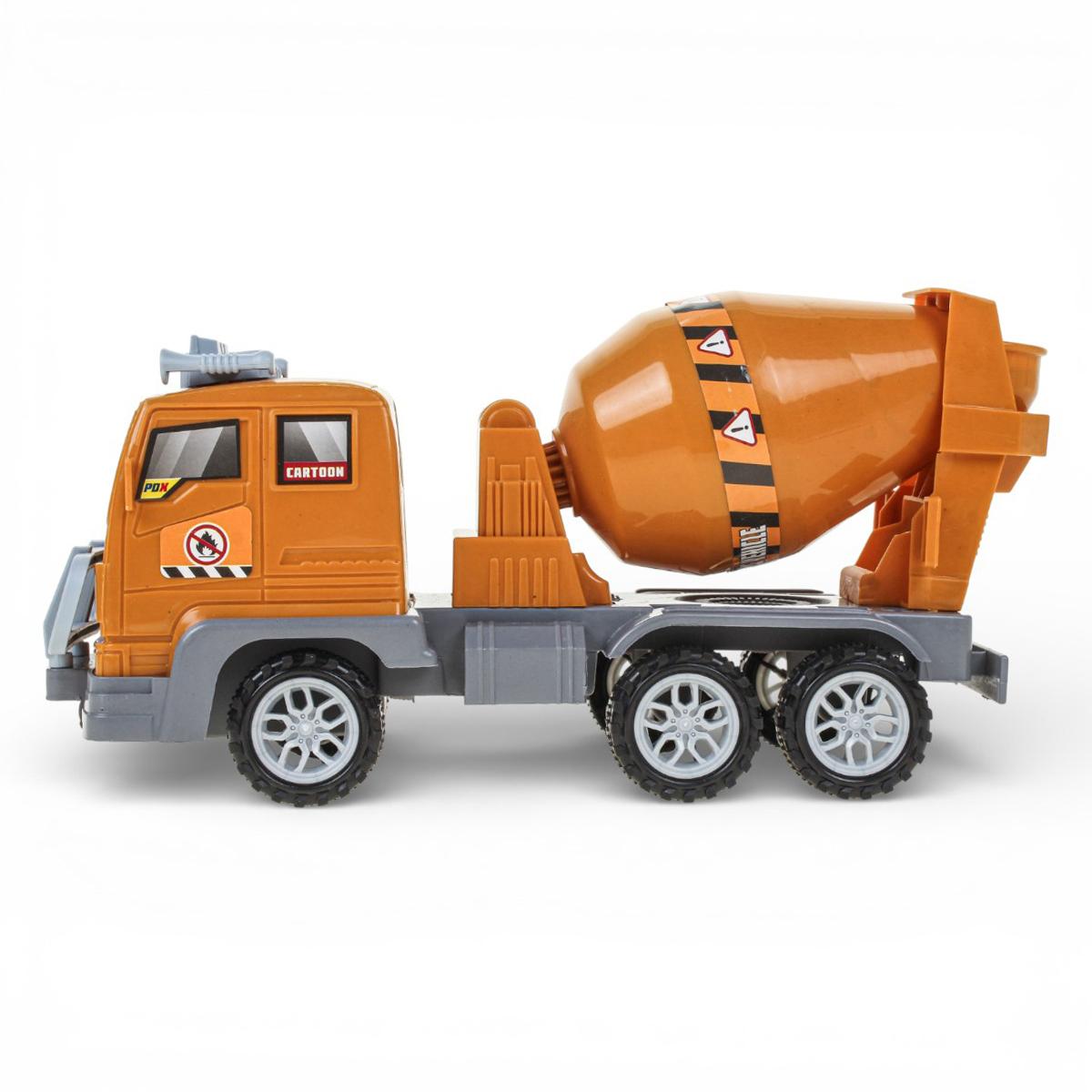 Игрушечная бетономешалка поможет ребенку почувствовать себя настоящим участником большой стройки. Яркий оранжевый корпус, детализированная кабина и крупный смесительный барабан делают игру реалистичной и захватывающей. Инерционный механизм позволяет машинке быстро набирать скорость без батареек — достаточно слегка прижать ее к полу, откатить назад и отпустить.