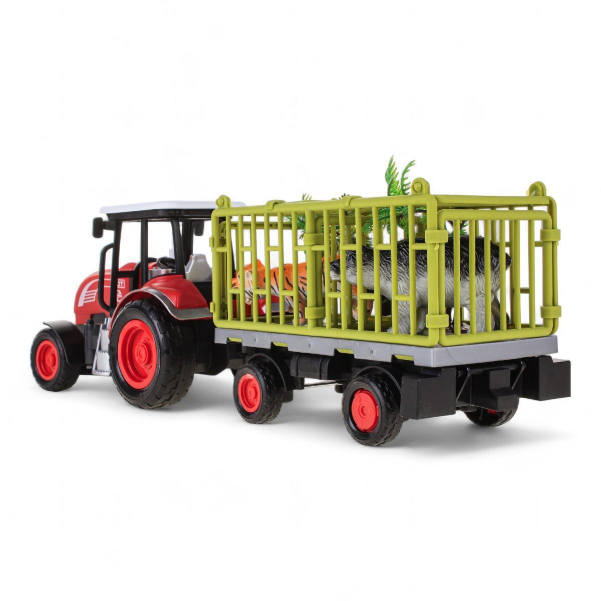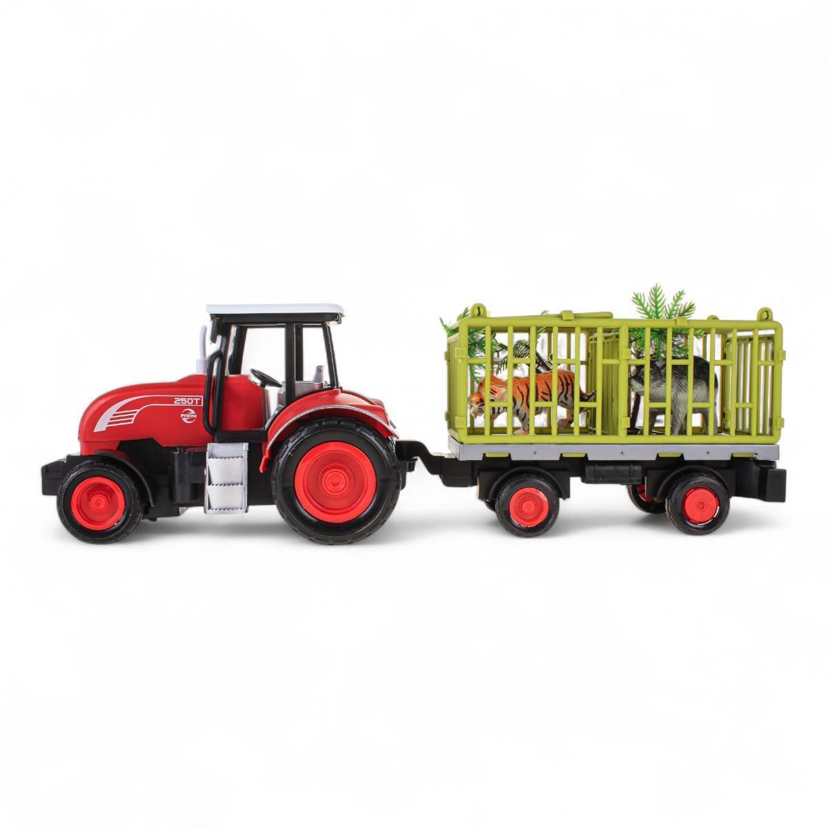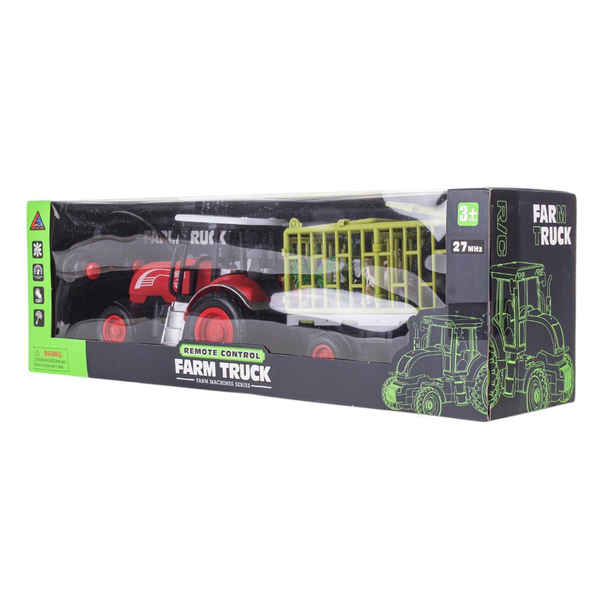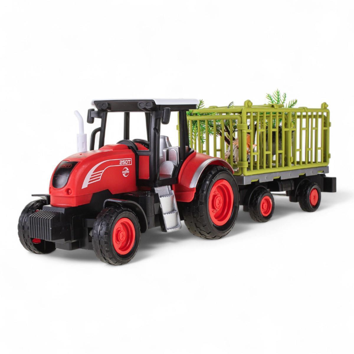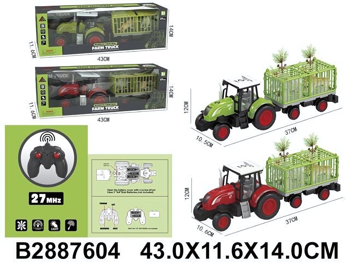 Машинка на радиоуправлении, трактор с прицепом 43 см, зеленая и красная, подсветка, пластик