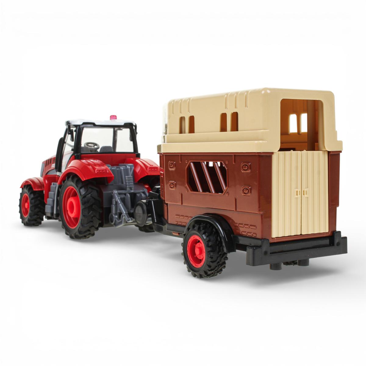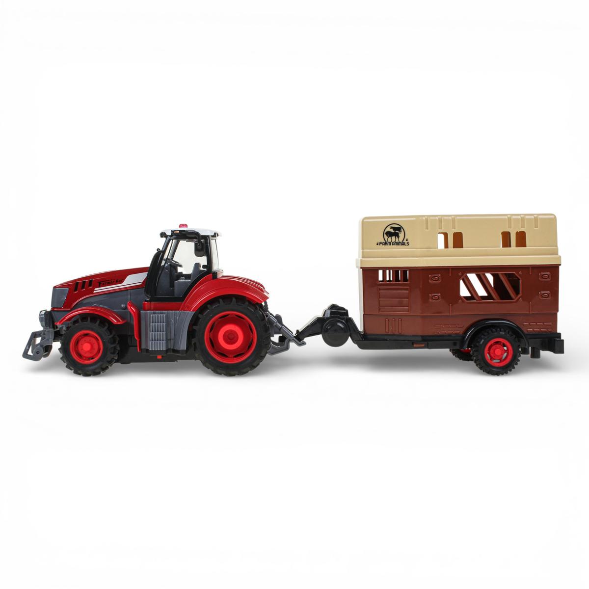 Удобный пульт управления интуитивно понятен, поэтому ребенок быстро освоит управление и сможет устраивать гонки, перевозить «грузы» и создавать игровые фермерские истории. Прицеп расширяет возможности игры и делает процесс более реалистичным.