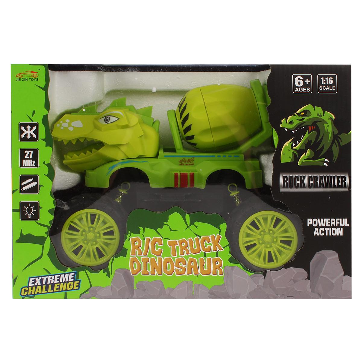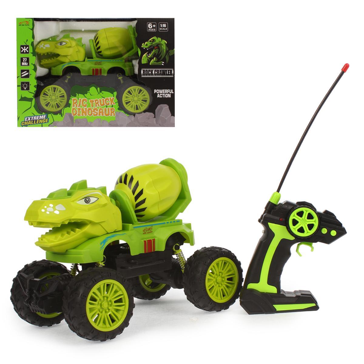 Машинка радиоуправляемая «BIG TRUCK DINOSAUR» 1:16, зеленая, внедорожник с бетономешалкой, 30 см