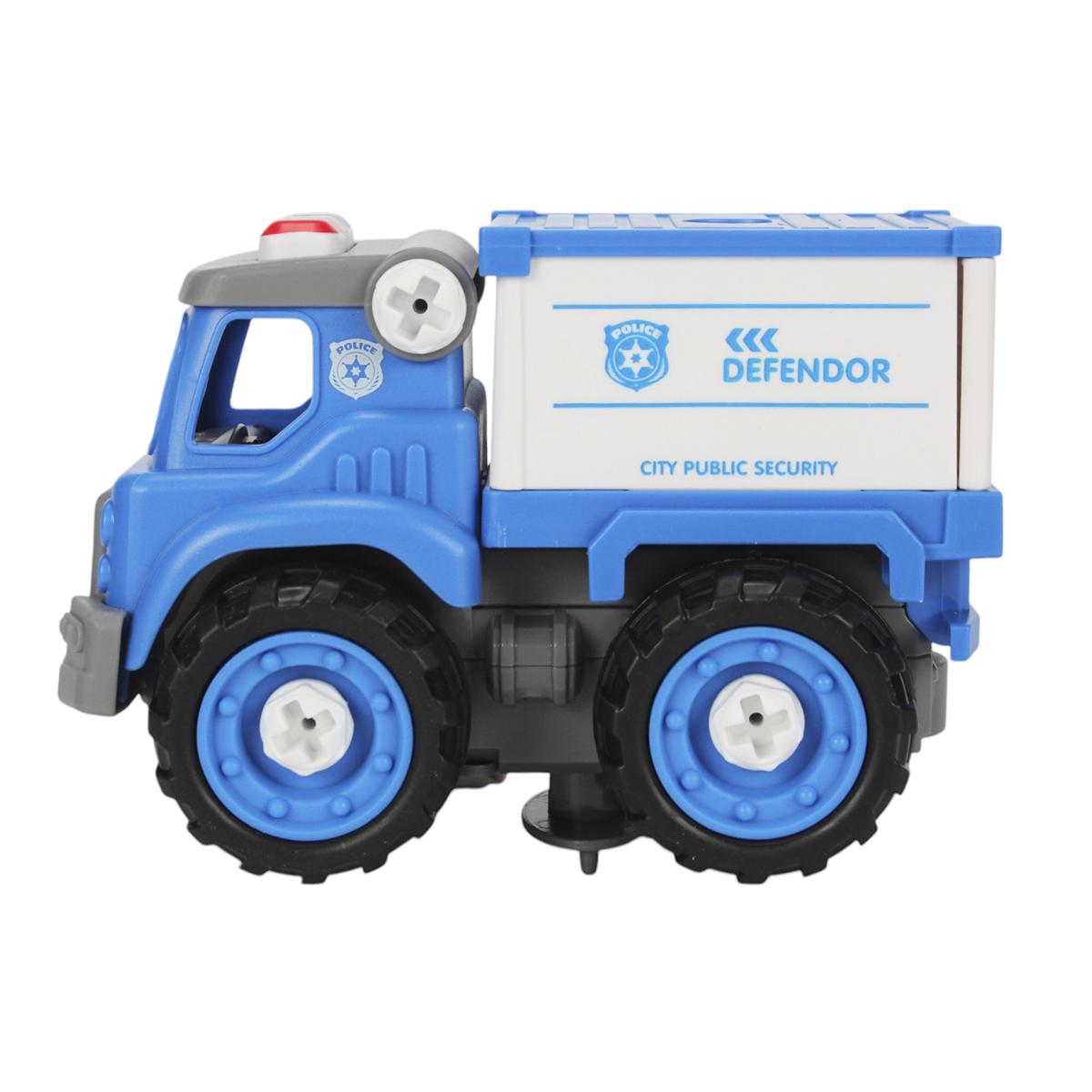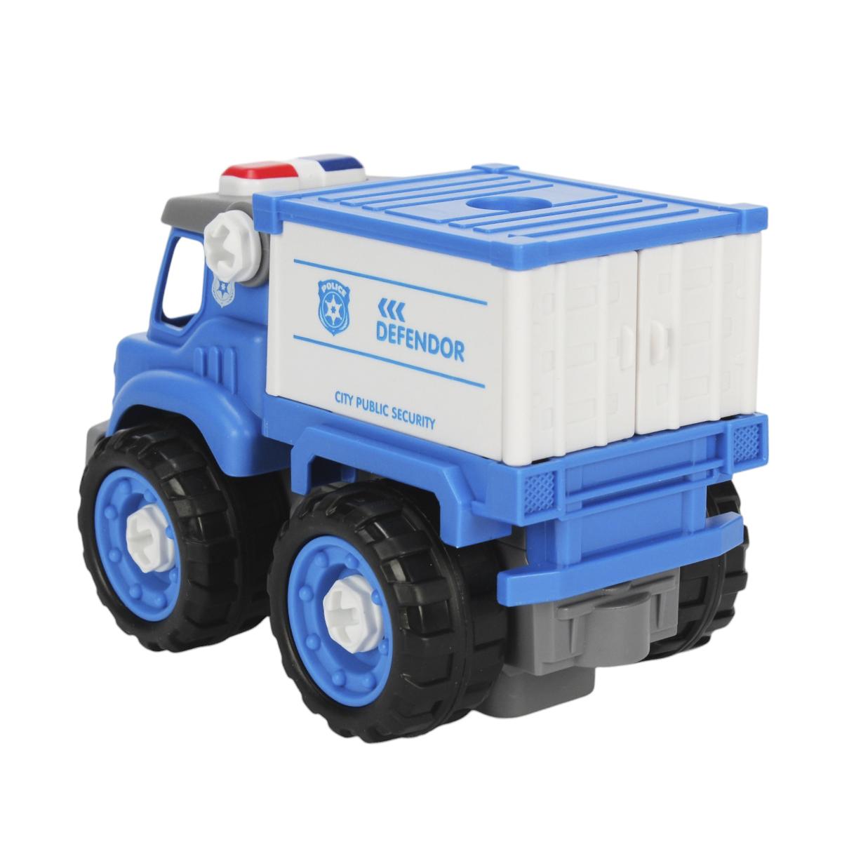 Игрушечный грузовик «DEFENDOR» с радиоуправлением подарит ребенку возможность почувствовать себя настоящим водителем спецтехники. Механизм сборки с помощью отвертки развивает мелкую моторику и логическое мышление, а детализированный дизайн с мигалками и надписями «CITY PUBLIC SECURITY» делает игру максимально реалистичной.