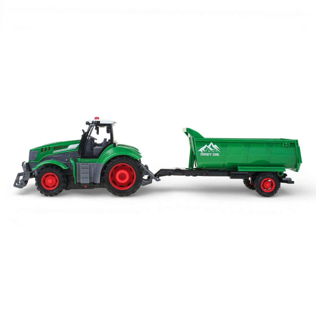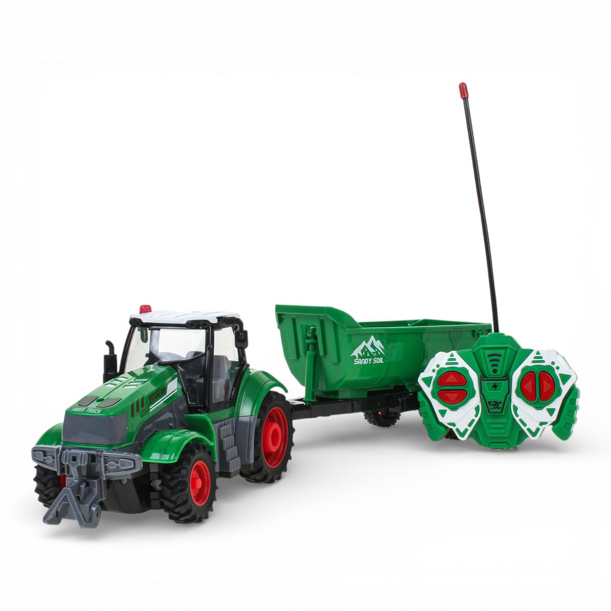 Трактор на радиоуправлении с прицепом — это практичный и увлекательный подарок, который надолго займет ребенка и позволит почувствовать себя настоящим водителем спецтехники.