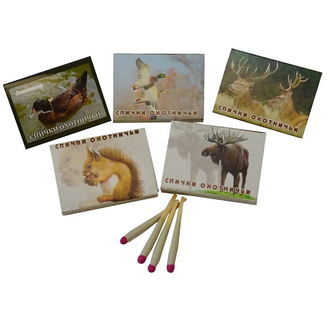Спички выполнены из качественного дерева, что обеспечивает их надежность и долговечность. Коробки имеют различные изображения диких животных, таких как утка и олень, что делает их не только функциональными, но и стильными. Размеры коробок стандартные, что позволяет удобно хранить их в любом месте. Спички охотничьи — это не просто инструмент, а часть вашего активного образа жизни на природе.