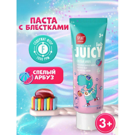Подарите своему ребенку радость чистки зубов с зубной пастой SPLAT Juicy Lab! Эта паста не только эффективно очищает зубы, но и делает процесс ухода за полостью рта увлекательным благодаря яркому арбузному вкусу и блесткам. Ваш малыш будет с удовольствием чистить зубы каждый день!