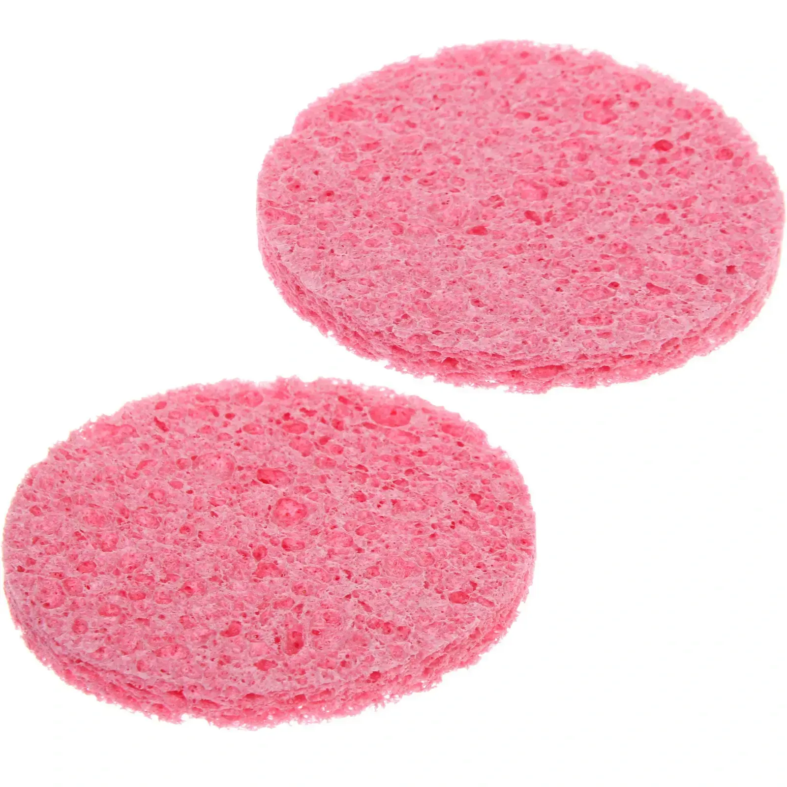 Спонжи выполнены из качественного поролона, который обеспечивает отличную впитывающую способность и долговечность. Они упакованы в прозрачный пакет с удобным отверстием для подвешивания, что делает их хранение простым и удобным. Размер губок составляет 8,5 см в диаметре, что делает их идеальными для использования в домашних условиях.