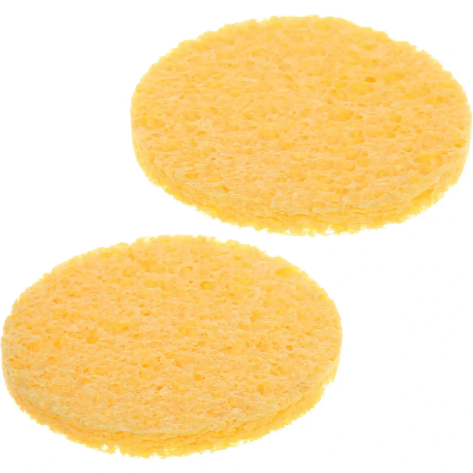 Каждый спонж имеет диаметр 8,5 см и выполнен из качественного поролона, что обеспечивает долговечность и практичность. Упаковка содержит два спонжа, что делает их отличным выбором для семьи или для использования в путешествиях. Спонжи упакованы в прозрачный пакет с удобным отверстием для подвешивания, что позволяет легко хранить их на кухне или в ванной.