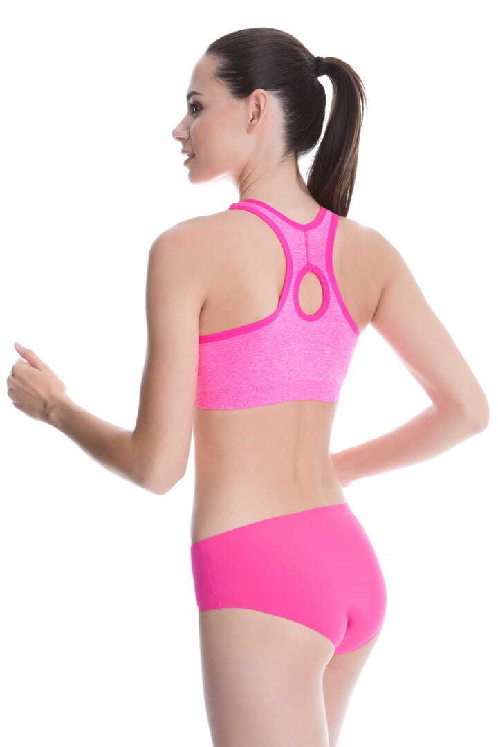 - Вынимаемые чашечки, соединенные между собой, обеспечивают стабильную поддержку груди даже во время интенсивных тренировок