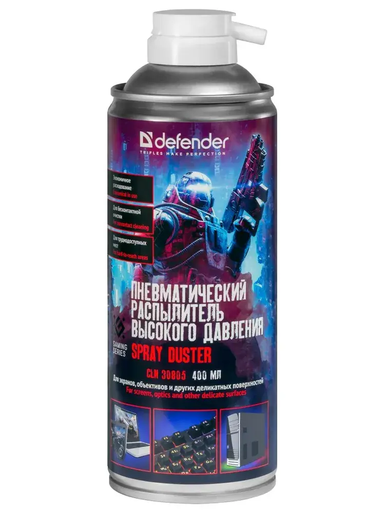 Спрей-очиститель "Gaming" от Defender создан специально для бережного ухода за экранами, оптикой и другими чувствительными поверхностями. Его формула эффективно удаляет пыль, отпечатки пальцев и загрязнения, не оставляя разводов.