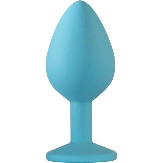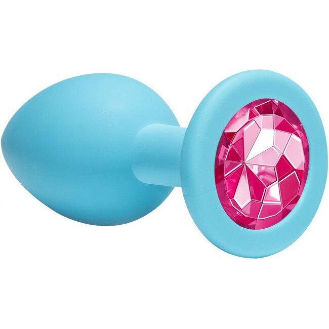 Анальная пробка 'Cutie Medium' с кристаллом, силикон бархатистый, 8,2 см, голубой с розовым