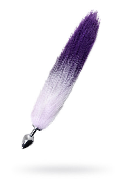 Анальная втулка с пушистым хвостом, бело-фиолетовый, металл, длина хвоста 37см