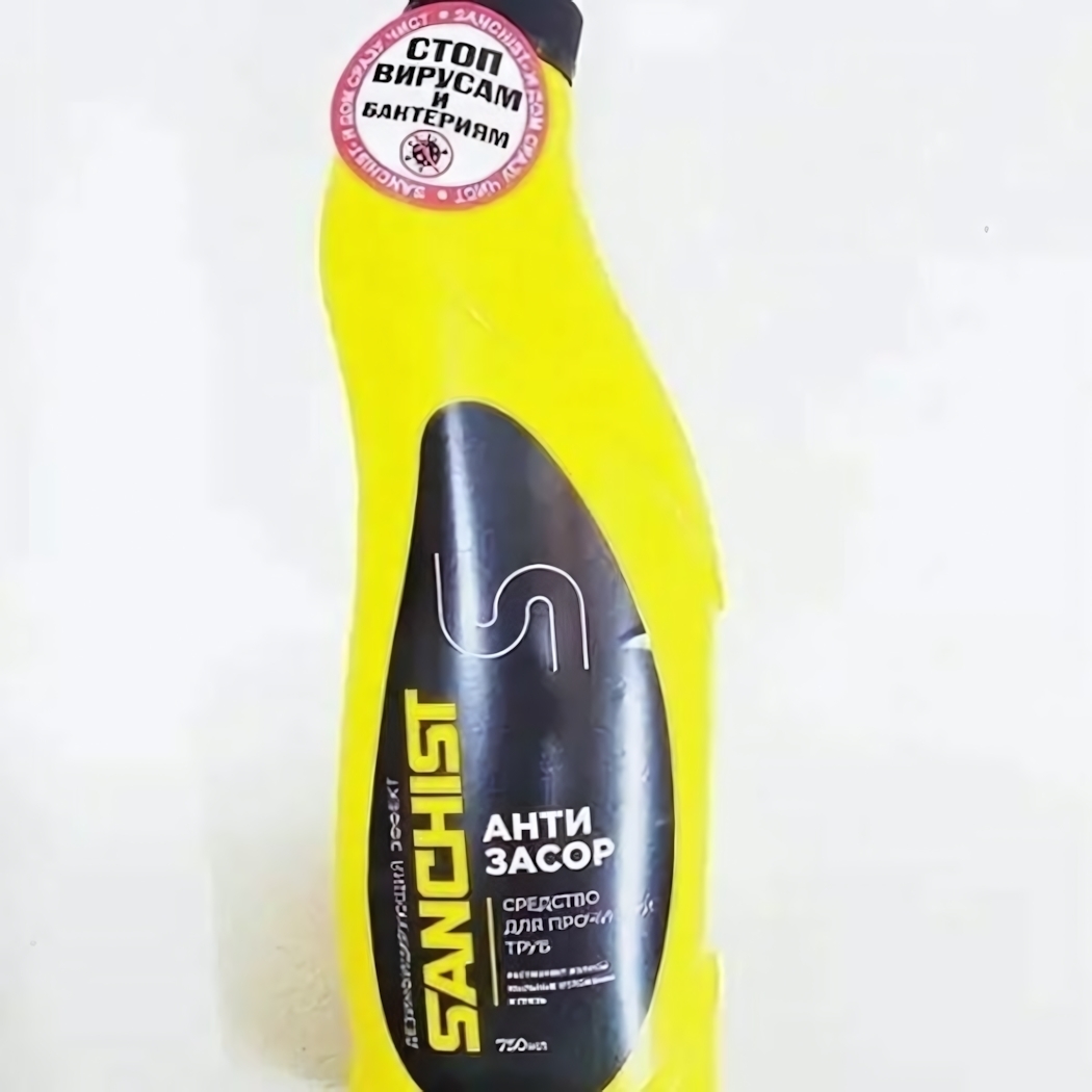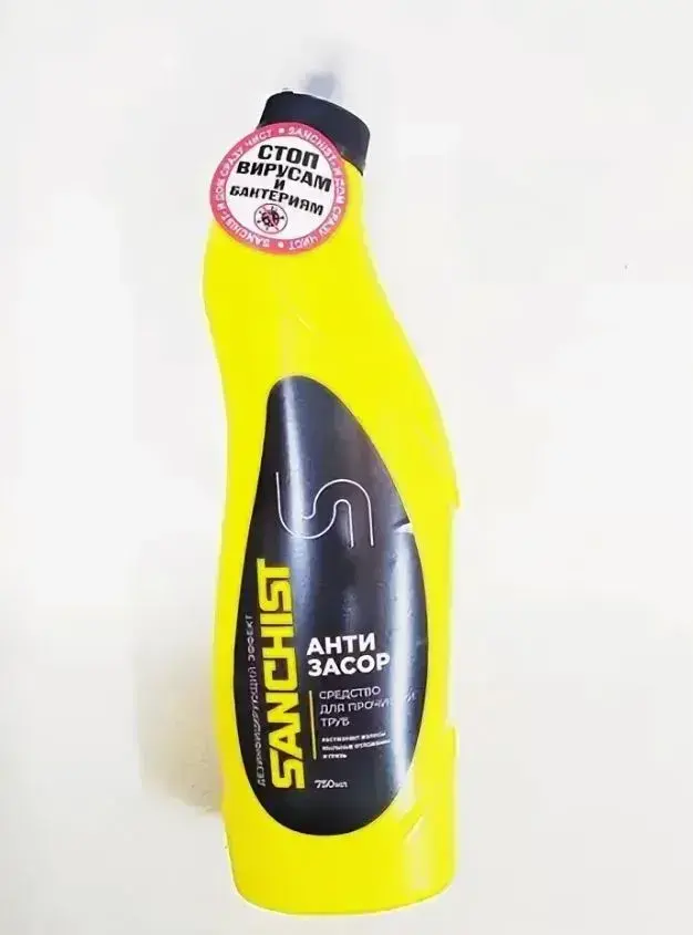 Объем средства составляет 750 мл, что позволяет использовать его несколько раз. Ярко-желтая упаковка с черной этикеткой не только привлекает внимание, но и информирует о действии средства. САНЧИСТ — это надежное решение для вашего дома, которое поможет вам избежать неприятных ситуаций с засорами.